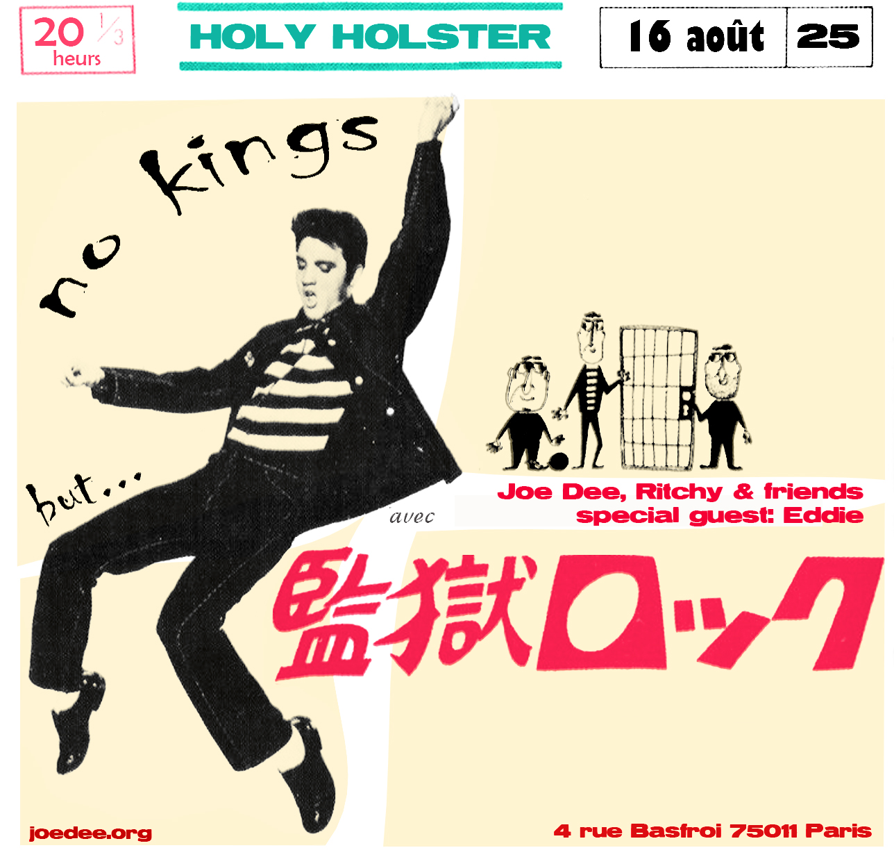 In memory of the King of Rock ‘n’ Roll, a jam session was held at Holy Holster in Paris (4 Rue Basfroi, 75011 Paris) on the anniversary of his death. In addition to Ritchy on bass and Joe Dee on vocals and guitar, Eddie Gazel (Eddie and the Startheads) also participated in the event, contributing his voice, guitar, and pure rock ‘n’ roll energy.